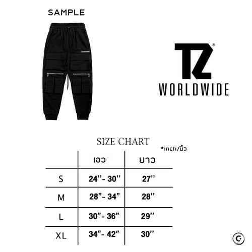 - กางเกงคาร์โก้ TZ WORLDWIDE ขายาวสีดำ