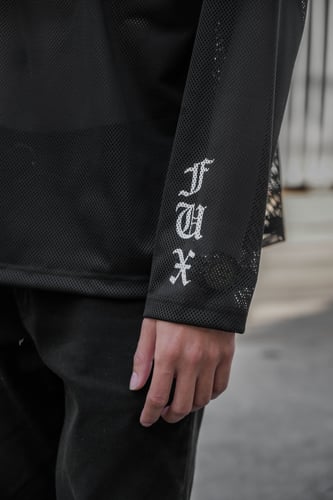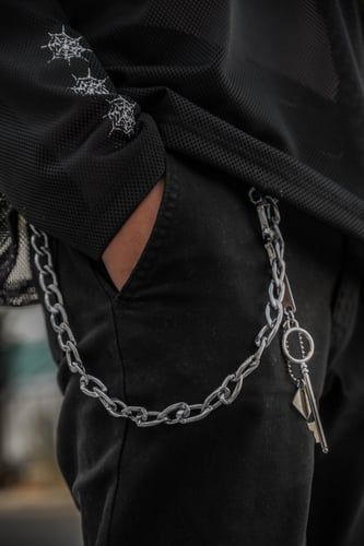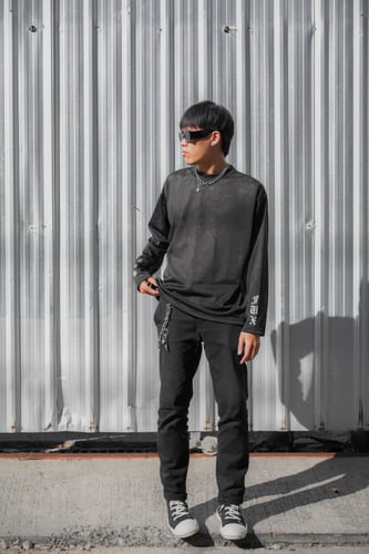 หนุ่มๆที่อยากได้ลุค เท่ ดุ เราขอหยิบเสื้อตาข่ายจาก FUXURY รุ่น SPIDER WEB MESH L/S TEE แขนยาวที่ปักดีเทลตกแต่งตรงปลายแขน สวมใส่สบายๆ จับคู่กับกางเกงยีนส์สีดำ ทรงสลิม ไม่รัดแน่นจนเกินไป จากนั้นคล้องโซ่ JMILLEX รุ่น CHUNKY CHAIN X RING และอีกไอเทมที่ขาดไม่ได้เลยรองเท้าผ้าใบสีขาวดำสุดคลาสสิค เพิ่มความเท่เข้าไปอีกด้วยการสวมสร้อย 2 เส้น จาก JMILLEX รุ่น SHACKLE CHOKER และ JMILLEX รุ่น YINYANG BALL CHAIN SILVER