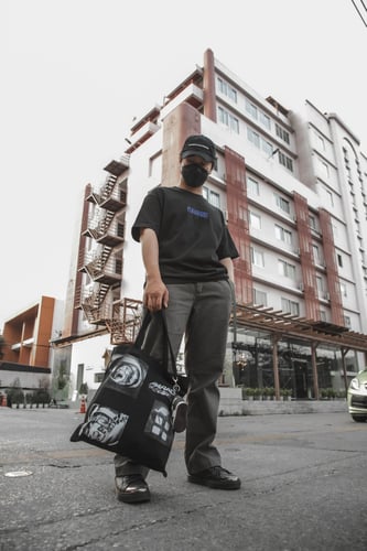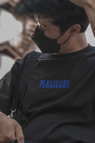 คุมโทนสีดำ มาดขรึม เป็นลุคที่หนุ่มๆ ไม่ควรพลาด เราขอหยิบเสื้อยืดสีดำ PLEASURES รุ่น CORE EMBROIDERED T-SHIRT มาจับคู่กับกางเกงยีนส์ทรงหลวมสีเข้ม เป็นอะไรที่ลงตัวมาก ๆ เสริมลุคด้วยหมวก YOUNGMONEYBROKE รุ่น BASEBALL CAP BLACK แถมใส่แล้วยังโดดเด่นกว่าใคร ในส่วนของรองเท้าถ้าหนุ่มๆ อยากได้ลุคแบบเท่ๆ ก็แนะนำให้เลือกใส่รองเท้าหนังคู่ใจ และกระเป๋าผ้าอีกหนึ่งไอเทมที่ในช่วงนี้คนนิยมถือกันมากอย่าง PARADISE YOUTH CLUB X HYPERGRAND รุ่น BRAIN SHOCKING TOTE BAG ช่วยทำให้การแต่งตัวของคุณดูดีมีสไตล์มากยิ่งขึ้น