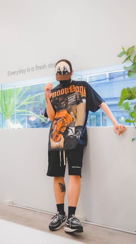 RAP TEE เป็นอีกไอเทมที่ใส่ยังไงก็ดูดี ลุคนี้มาในธีมสีดำ น้ำตาล เสื้อยืดจากแบรนด์ COSMIC STORE รุ่น SNOOP DOG T-SHIRT BLACK ซัมเมอร์แบบนี้แต่งคู่กางเกงขาสั้นสีดำ VELIKA รุ่น BASIC SHORTS เพิ่มหมวกอีกมบอย่าง PLEASURES รุ่น GAZE TRUCKER SNAPBACK BROWN ไอเทมช่วยปกป้องใบหน้าคุณจากแสงแดด แถมใส่แล้วยังช่วยเสริมลุคของคุณให้ดูดีมากยิ่งขึ้นอีกด้วย ไม่ว่าหยุดยาวนี้คุณจะไปเที่ยวทะเล หรือไปเที่ยวในเมือง แต่งตัวลุคสตรีทเท่ ๆ หมวกแก๊ปดีไซน์ก็ช่วยคอมพรีทลุคของคุณให้เพอเฟกต์ได้ง่ายๆ