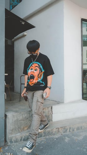 ลุคนี้เป็นอีกหนึ่งลุคที่หนุ่มๆ หลายคนชอบแต่งกัน! หรือใครที่ชอบแต่งลุคสตรีท ลุคนี้ก็ตอบโจทย์คุณมาก หนีไม่พ้นเสื้อยืด + กางเกงขายาว ซึ่งเราได้หยิบเสื้อยืดแบรนด์ CREATE BOOTLEG รุ่น TRUE DYSTOPIA T-SHIRT สีดำ จับคู่กัยกางเกงคาร์โก้ขายาวสีกากี ถ้ารู้สีกเบื่อก็เพิ่มสร้อยคอ JMILLEX รุ่น LOCKED CHUNKY CHAIN และ ข้อมือ JMILLEX รุ่น LEATHER BRACELET ขอบอกเลยว่าลุคนี้เป็นลุคเบสิกสุด ๆ