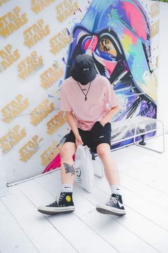 ลุคสบายๆ แต่ดูเท่มากๆ เสื้อยืดโอเว่อร์ไซส์ VELIKA รุ่น SIGNATURE V T-SHIRT PINK มิกซ์แอนด์แมทช์กับกางเกงสีดำ ขาสั้น ทรงหลวม THE BIAS CLUB รุ่น LOGO SHORTS BLACK เพิ่มหมวกจาก MIGHTY รุ่น NYLON BUCKET สีดำ และจับคู่กับถุงเท้าสีขาว รองเท้าผ้าใบสีดำ เพียงเท่านี้ก็ออกจากบ้านไปเท่ได้แล้ว