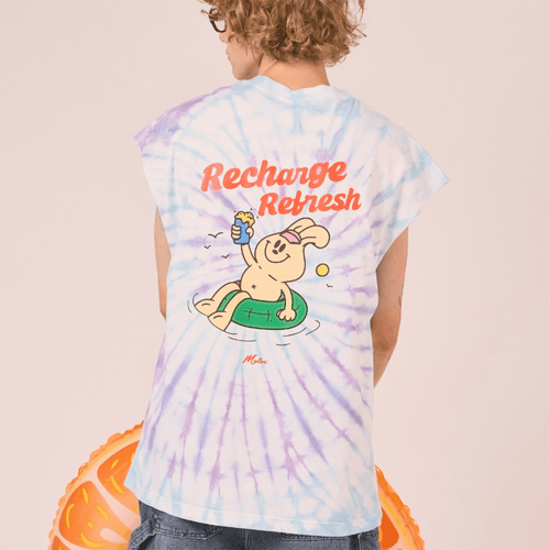 - เสื้อแขนกุดคอกลมผ้ามัดย้อม