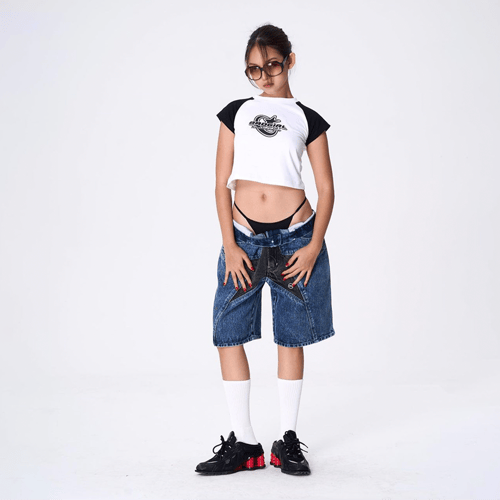 - เสื้อครอปสีขาว แต่งแขนสีดำ