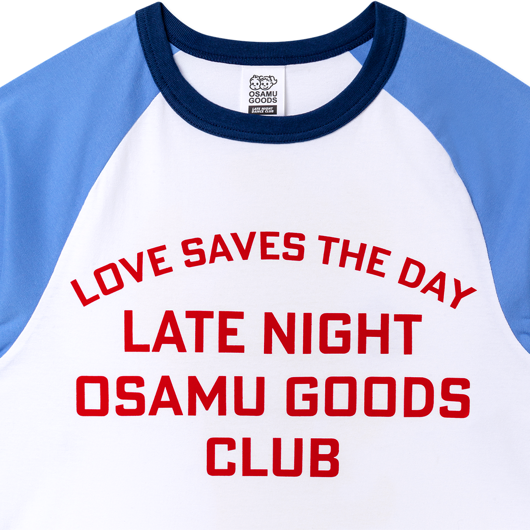LATE NIGHT DANCE CLUB OSAMU GOODS RAGLAN T-SHIRT WHITE/BLUE