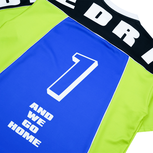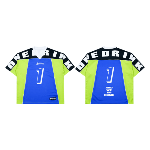 ONE DRINK AND WE GO HOME FOOTBALL JERSEY BLUE
