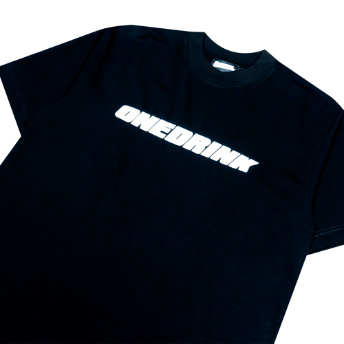 ONE DRINK AND WE GO HOME LOGO T-SHIRT BLACK
