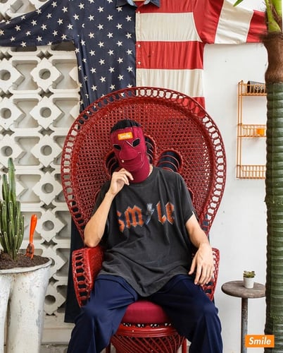 - หมวกหน้ากากแบรนด์ SMILE CLUB CUSTOM สีแดง