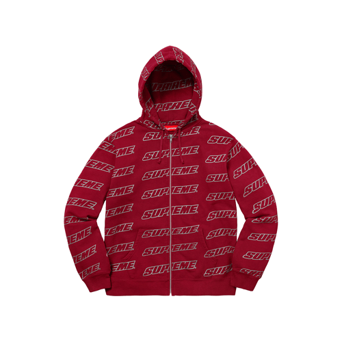 SUPREME REPEAT ZIP UP HOODIE CARDINAL