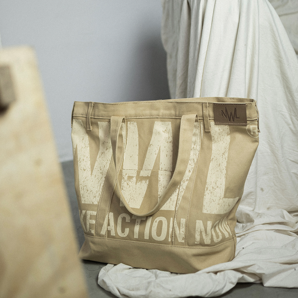 NWL.BKK X CURATORS CTRL SESAME OVERPRINT CANVAS TOTE BAG CREAM