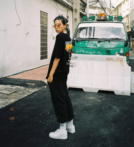- ด้านหน้าปลายกระเป๋าซ้ายมือปักชื่อแบรนด์ RUNDOWNYOUTH